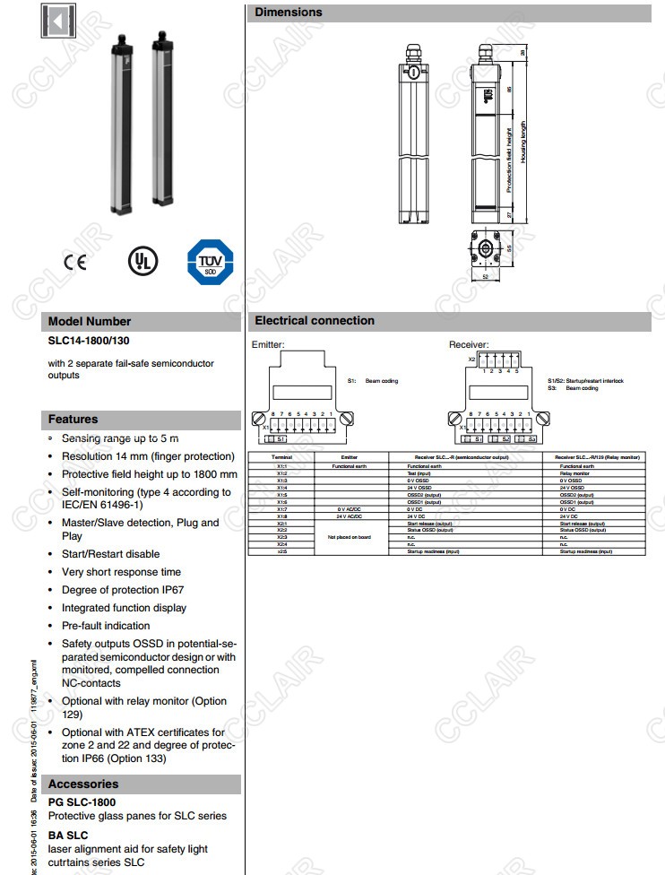 SLC14-1650/130,SLC14-1800/130,SLC14-1800/31/130,SLC14-300,SLC14-300-S,安全光柵