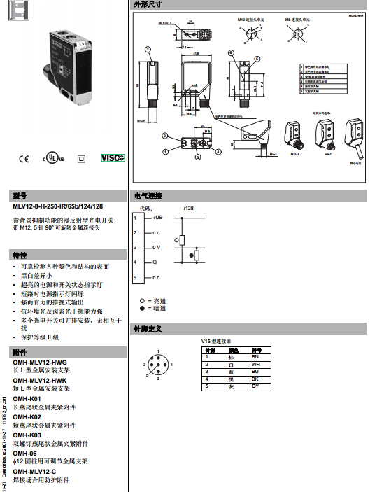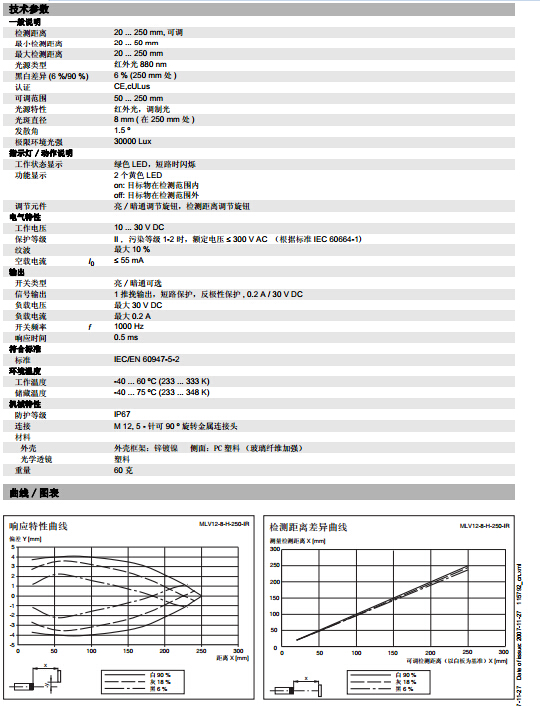 MLV12-8-H-250-IR/65b/124/128,漫反射型傳感器