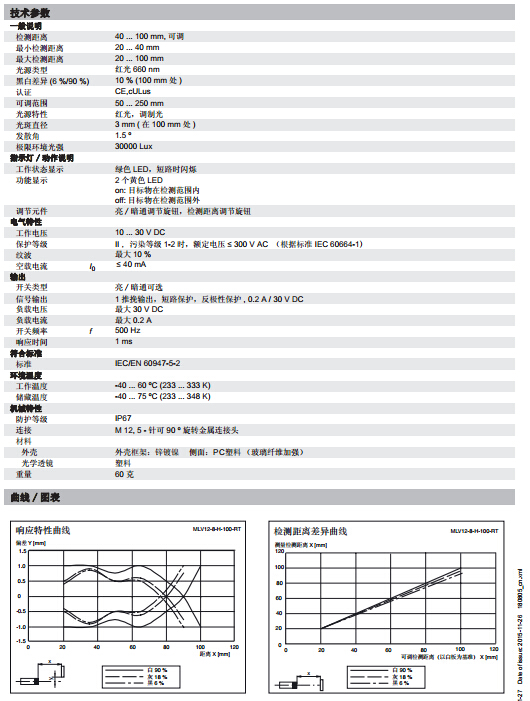 MLV12-8-H-100-RT/65b/124/128,漫反射型傳感器
