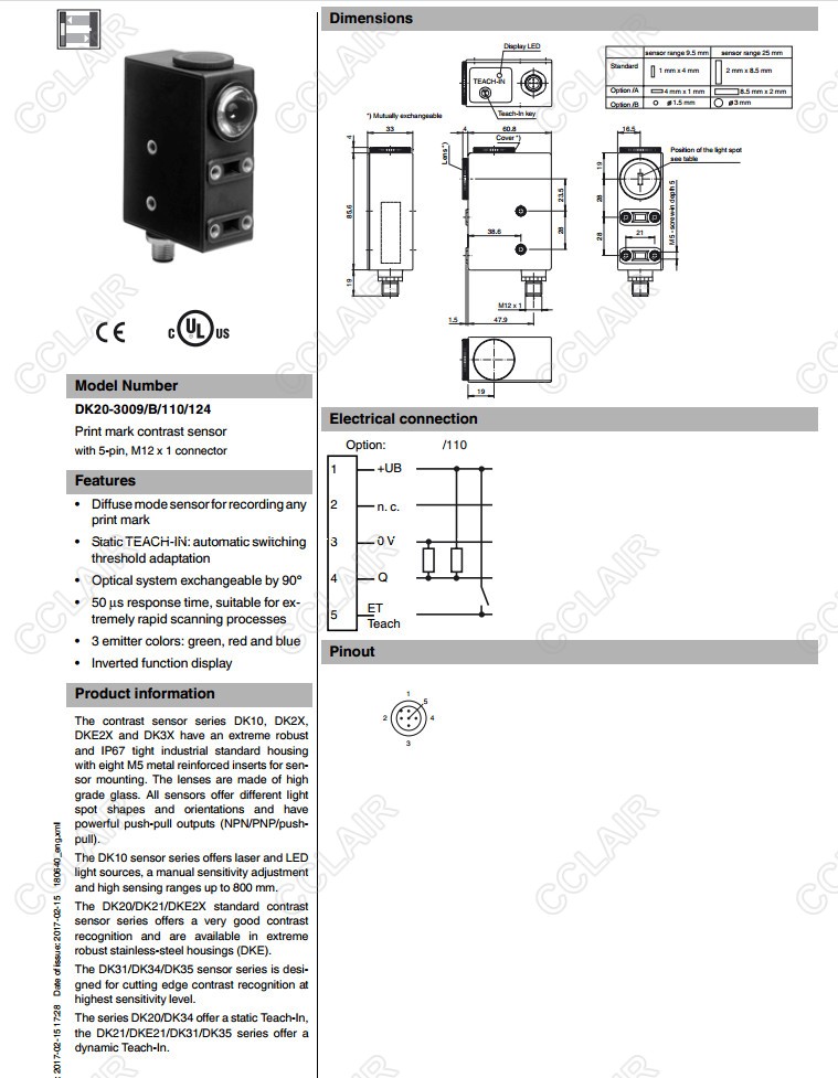 DK20-3009/B/110/124,DK20-9,5/9S20/110/124,DK20-9,5/B/79B/110/124,色標對比度傳感器