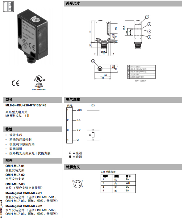 ML8-8-HGU-220-RT/103/143,漫反射型傳感器