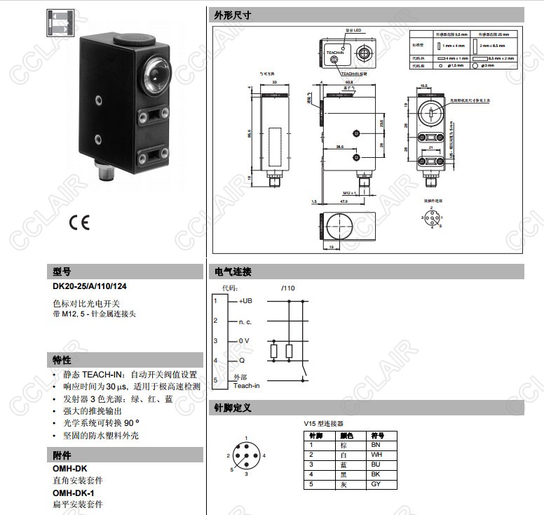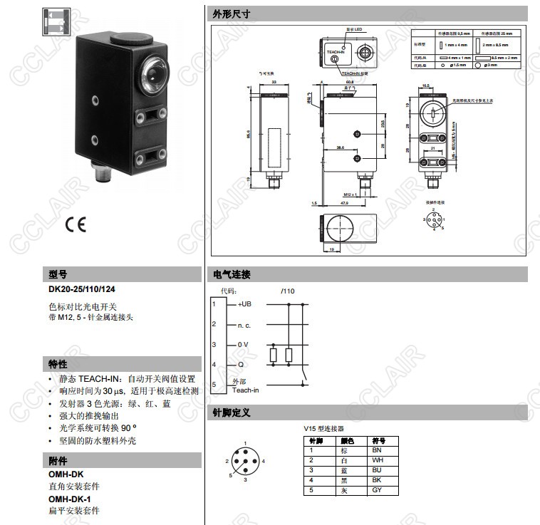 DK20-25/110/124,DK20-25/A/110/124,DK20-25/B/110/124,色標對比度傳感器