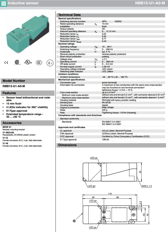 NBB15-U1-A0-M,NBB15-U1-A0-T