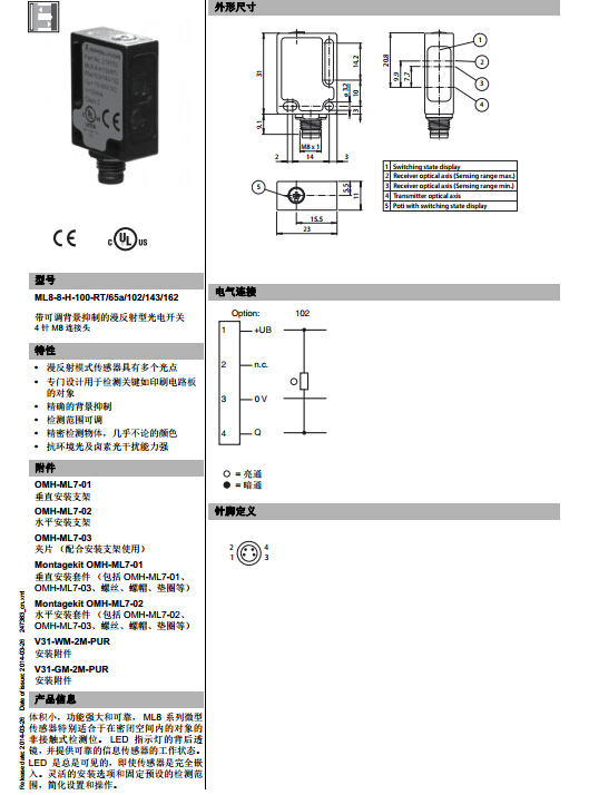 ML8-8-H-100-RT/65a/102/143/162,漫反射型傳感器