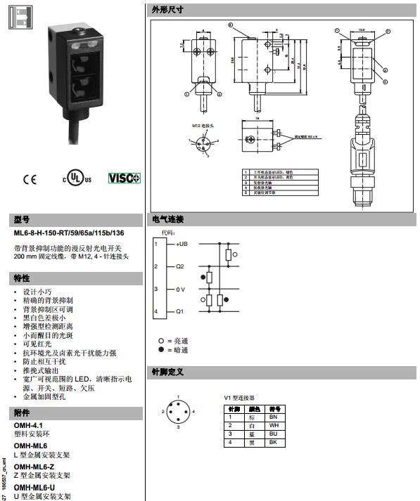 ML6-8-H-150-RT/59/65a/115b/136,漫反射型傳感器
