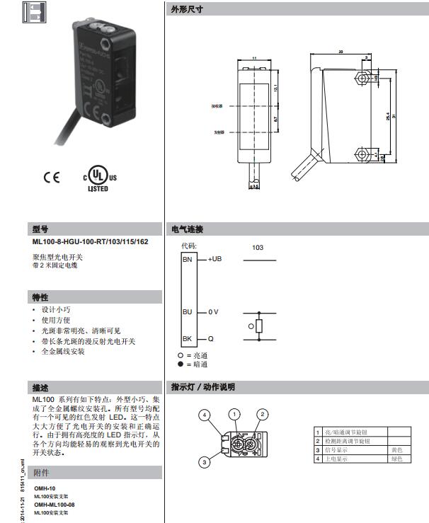 ML100-8-HGU-100-RT/103/115/162,漫反射型傳感器