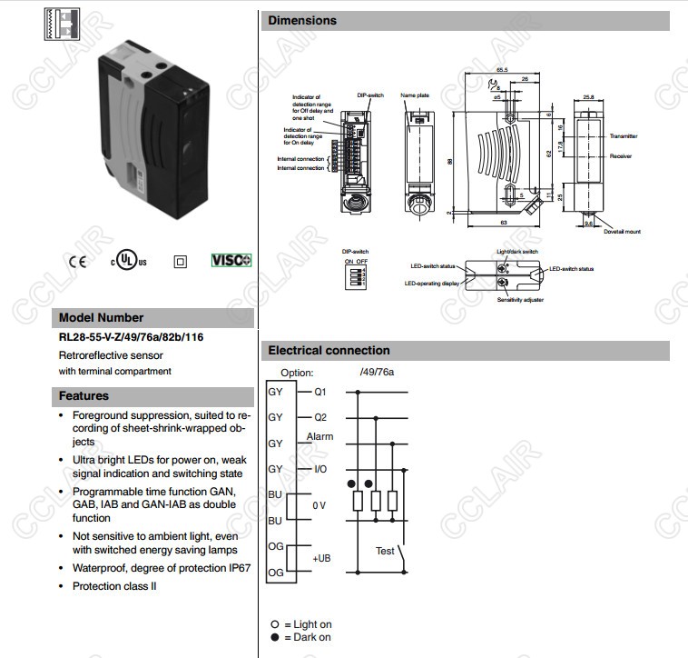 RL28-55-V-Z/49/76a/82b/116,反射板型傳感器