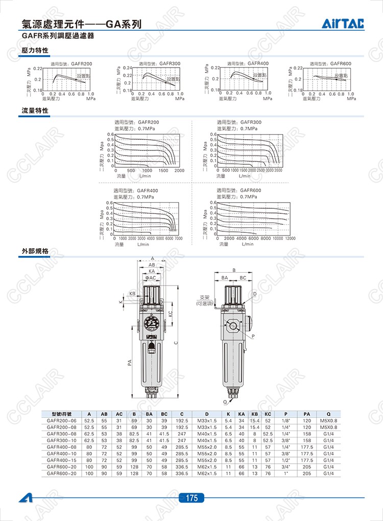GAFR200-06,GAFR200-08,GAFR300-08,GAFR300-10,GAFR400-08,AIRTAC調(diào)壓過濾器