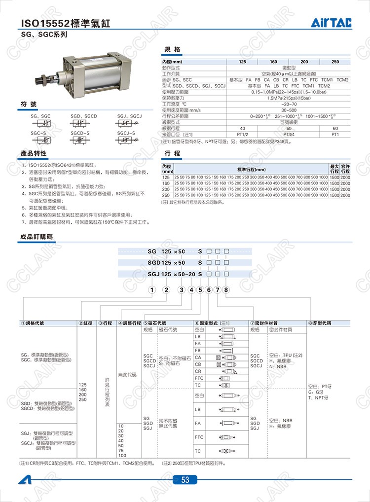 SG125*25,SG125*25-S,SGD125*25,SGD125*25-S,SGJ125*25,SGJ125*25-S,AIRTAC亞德客標準氣缸