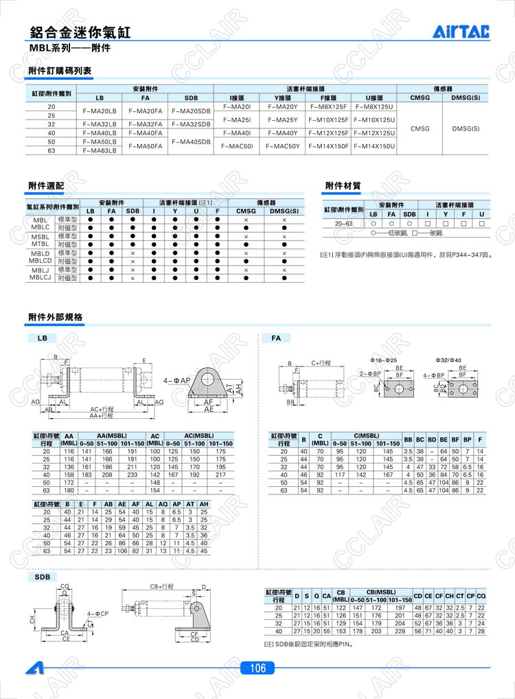 AIRTAC亞德客 迷你氣缸附件LB16,LB20,LB25,LB32,LB40,LB50,LB63 FA16,FA20,FA25,FA32,FA40,FA50,FA63 SDB16,SDB20,SDB25,SDB32,SDB40 F-MA16I,F-MA20I,F-MA25I,F-MA40I,F-MA50I F-MA16Y,F-MA20Y,F-MA25Y,F-MA40Y,F-MA50Y