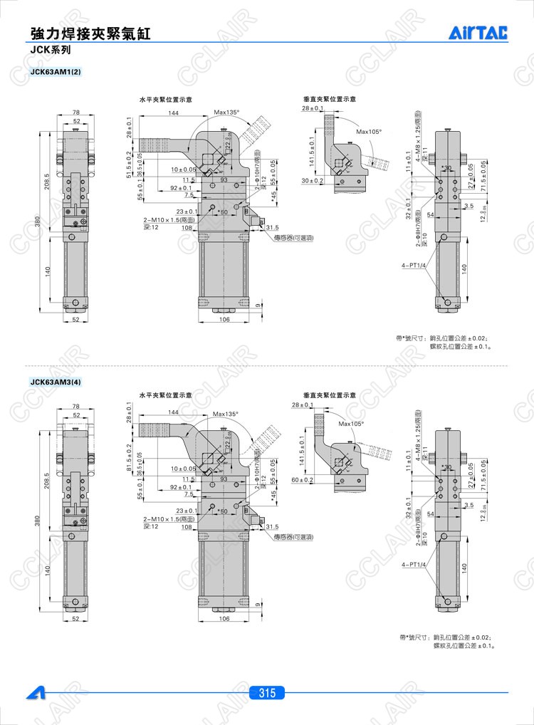 亞德客AIRTAC,JCK40*15AM1R,JCK40*15AM1C,JCKV40*15AM1R,JCKV40*15AM1C,JCKV40*15AM1L,強(qiáng)力焊接夾緊氣缸