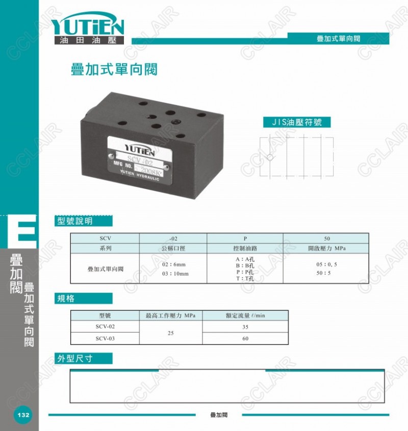YUTIEN油田疊加式單向閥SCV-02A,SCV-02B,SCV-02P,SCV-02T,SCV-03A,SCV-03B,SCV-03P,SCV-03T