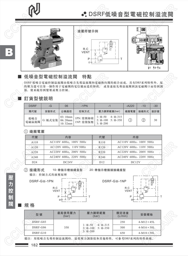 Northman北部精機(jī),低噪音型電磁控制溢流閥DSRF-G03-1PN-1-A110-10-30,DSRF-G03-1PN-1-A240-10-30,DSRF-G03-1PN-2-D24-10-30,DSRF-G03-1PN-3-A120-20-30,DSRF-G06-1PN-3-R220-10-30,DSRF-G06-1PN-4-R120-20-30,DSRF-G10-1PN-3-D24-10-30,DSRF-G10-1NP-5-D12-20-30