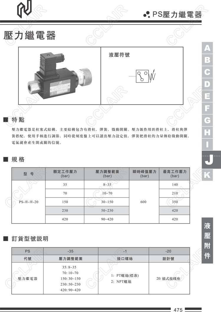 PS-35-1-20,PS-35-2-20,PS-70-1-20,PS-70-2-20,PS-150-1-20,PS-150-2-20,PS-230-1-20,PS-230-2-20,PS-420-1-20,PS-420-2-20,Northman臺(tái)灣北部精機(jī),壓力繼電器