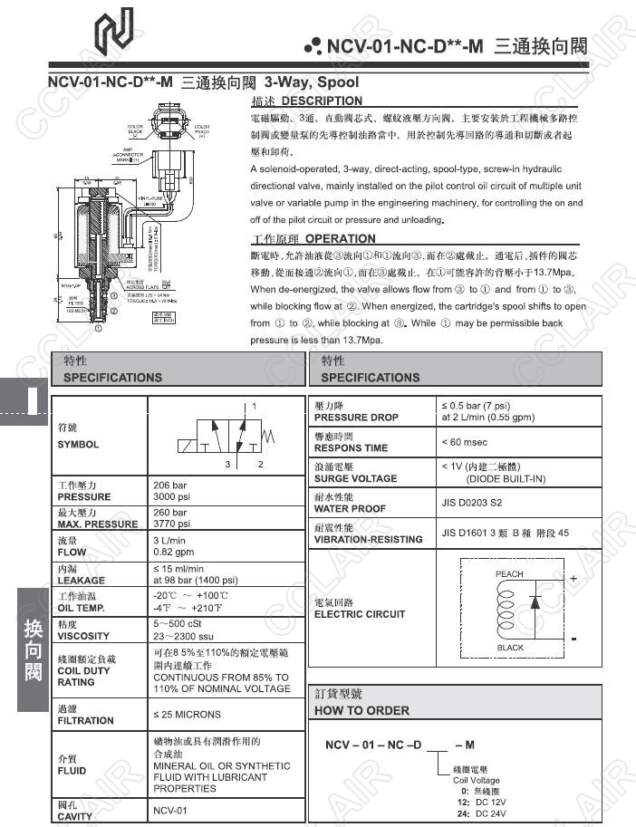 Northman臺灣北部精機(jī),三通換向閥NCV-01-NC-D0-M,NCV-01-NC-D12-M,NCV-01-NC-D24-M