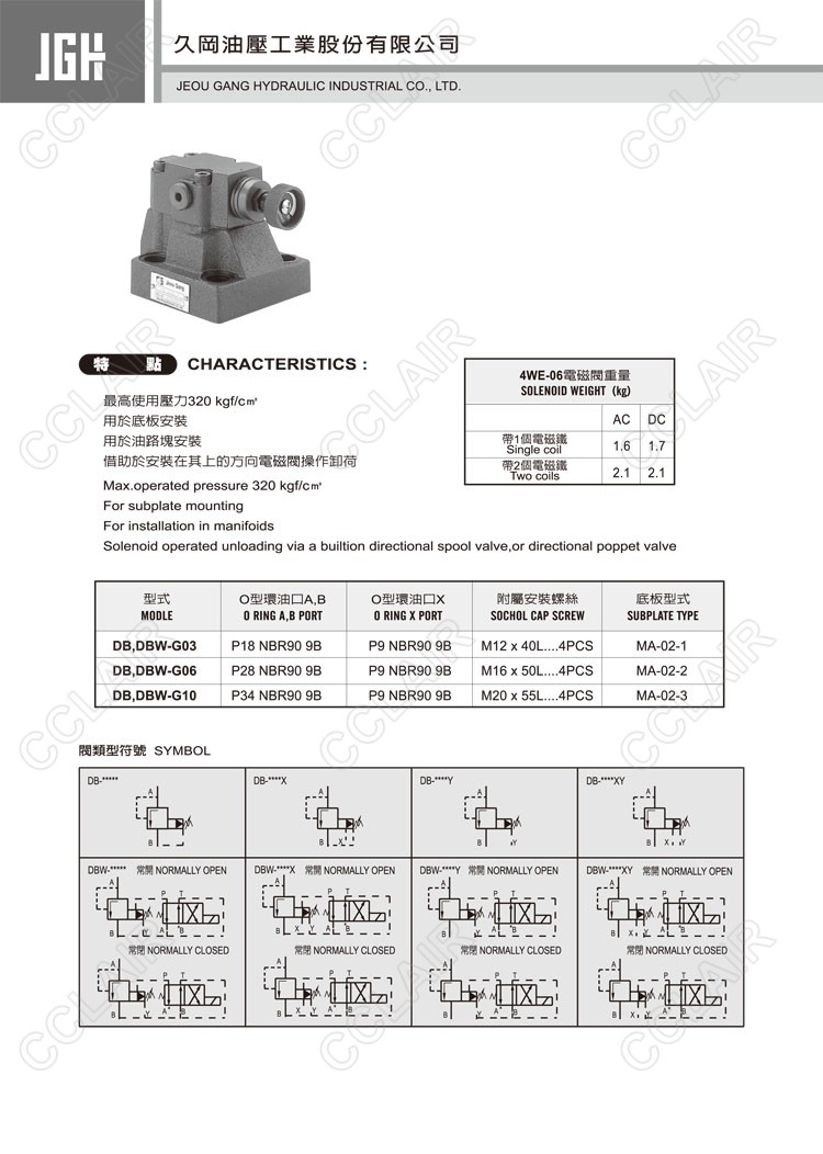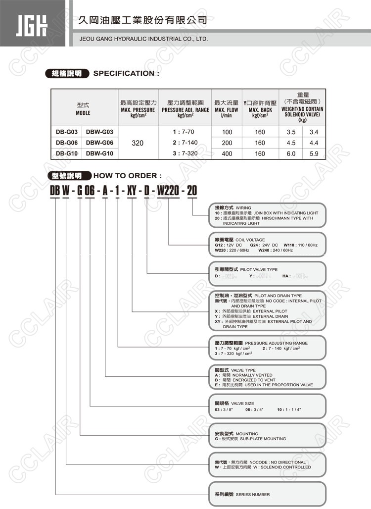 JeouGang臺(tái)灣久岡,電磁控制溢流閥DBW-G03-A-1-D-G12-10,DBW-G06-A-1-Y-Y-W220-10,DBW-G10-A-1-X-HA-W240-20,DB-G03-A-2-XY-HA-W110-10,DB-G06-A-2-HA-G12-10,DB-G10-A-2-XY-HA- W220-20,DB-G10-E-3-XY-HA-W240-10,DB-G10-E-3-XY-HA-W240-20