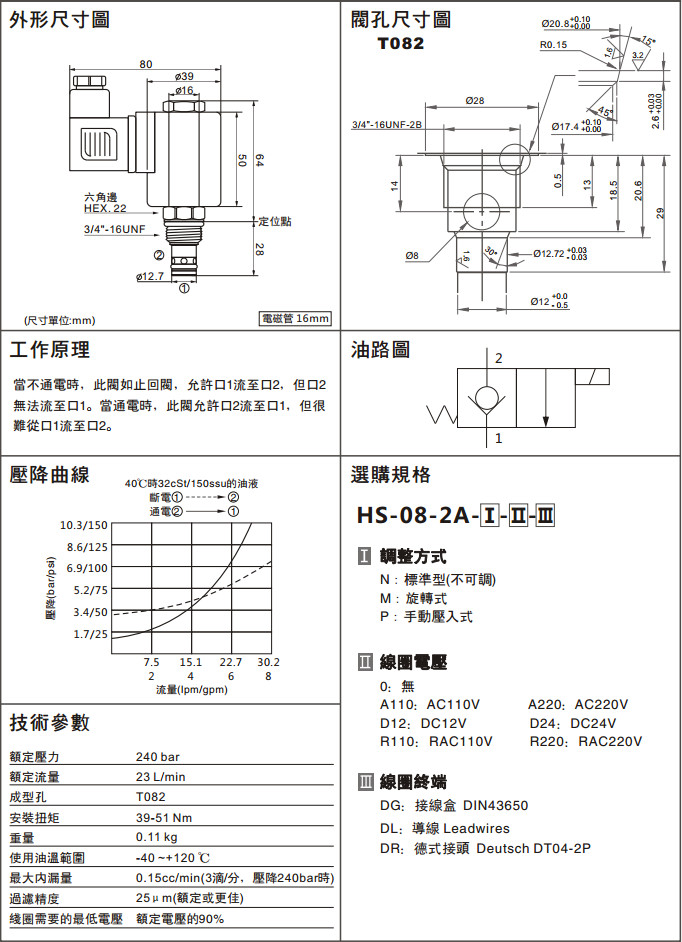 HS-08-2A-P-R110-DL,HS-08-2A-P-A220-DL,HS-08-2A-P-D24-DL,HS-08-2A-P-R220-DL, HS-08-2A-P-0-DR,HS-08-2A-P-A110-DR,HS-08-2A-P-D12-DR,HS-08-2A-P-R110-DR,HS-08-2A-P-A220-DR,HS-08-2A-P-D24-DR,HS-08-2A-P-R220-DR,兩通常閉型電磁換向閥