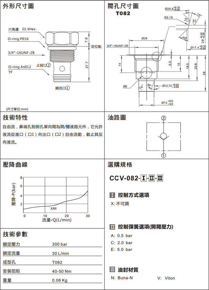 CCV-082-XAN,CCV-082-XCN,CCV-082-XEN,CCV-082-XCV,CCV-082-XAV,CCV-082-XEV,單向閥(口1通口2自由流)
