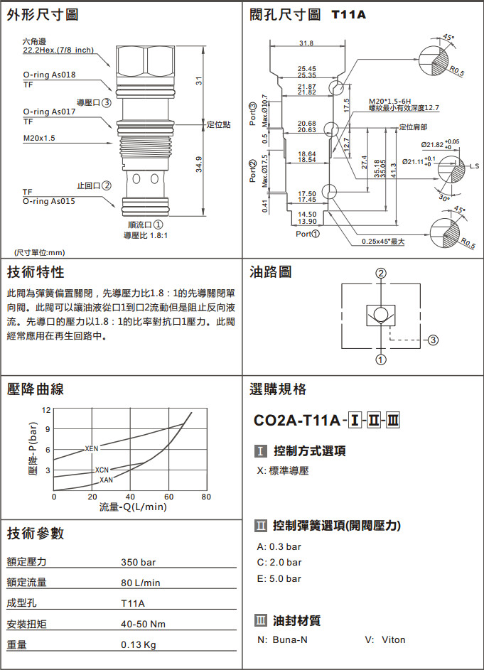 CO2A-T11A-XAN,CO2A-T11A-XCN,CO2A-T11A-XEN,CO2A-T11A-XAV,CO2A-T11A-XCV,CO2A-T11A-XEV,導壓關單向閥