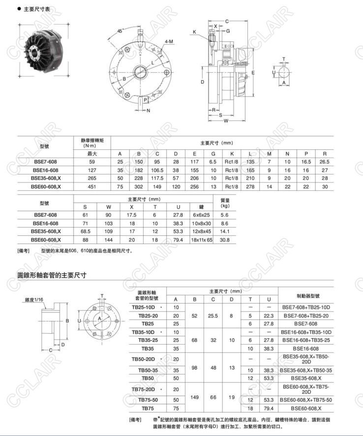 BSE7-608,BSE16-608,BSE35-608,BSE60-608,空壓通軸制動(dòng)器