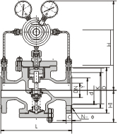 YK43F高壓氣體減壓閥連接尺寸: 公稱通徑DN 外 形 尺 寸 L H Hl 1.6/2.5MPa 4.0MPa 15 160 180 290 90 20 160 180 300 98 25 180 200 300 110 32 200 220 300 110 40 220 240 320 125 50 250 270 320 125 65 280 300 325 130 80 310 330 365 160 100 350 380 365 170 125 400 450 475 200 150 450 500 475 210 200 500 550 515 240 250 650 560 290 300 800 705 335 350 850 745 375 400 900 780 405 450 900 730 455 500 950 835 465