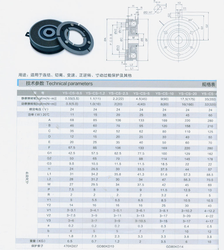 YS-CS-0.6,YS-CS-1.2,YS-CS-2.5,YS-CS-5,YS-CS-10,YS-CS-20,YS-CS-40,內(nèi)軸承式電磁離合器