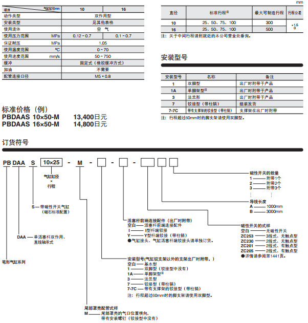 PBDAAS10*25,PBDAAS10*50,PBDAAS10*75,PBDAAS10*100,PBDAAS16*25,筆形氣缸--直線軸承式氣缸
