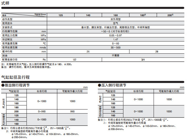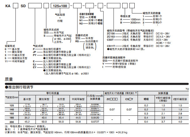 KA0SDP125,KA0SDP140,KA0SDP160,KA0SDP180,KA0SDP200,KA0SDPS125,SD行程調(diào)節(jié)氣缸