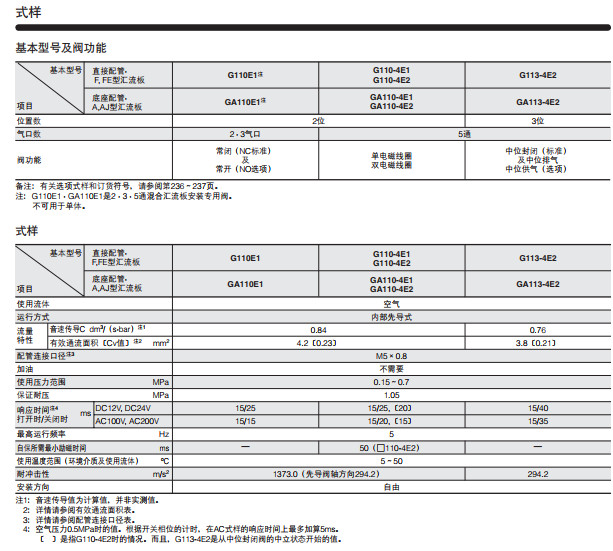 G110E1,G110-4E1,GA110E1-25,GA110-4E1-25,G110-4E2,GA110-4E2-25,G113-4E2,GA113-4E2-25,電磁閥G110系列