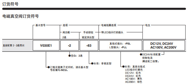 V030E1,V030E1-PLL,V030E1-PSL,V030E1-83,V030E1-83-PLL,真空電磁閥V030系列