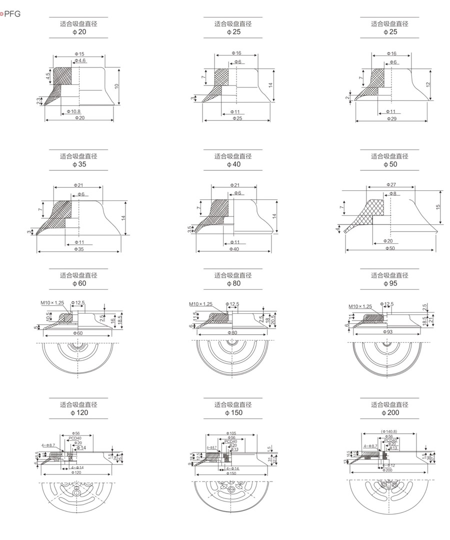 1、標準平形吸盤。