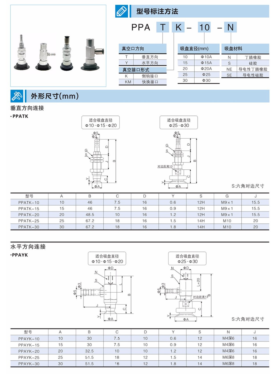 PPATK-10-N,PPATK-10-S,PPATK-10-NE,PPATK-10-SE,薄型垂直/水平真空口無(wú)緩沖吸盤(pán)組