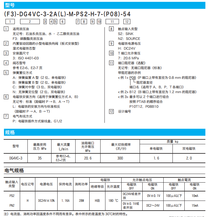 型號: DG4VC-3-0C-M-PS2-H-7-54,DG4VC-3-0C-M-PN2-H-7-54,DG4VC-3-1C-M-PS2-H-7-54,DG4VC-3-1C-M-PN2-H-7-54 DG4V