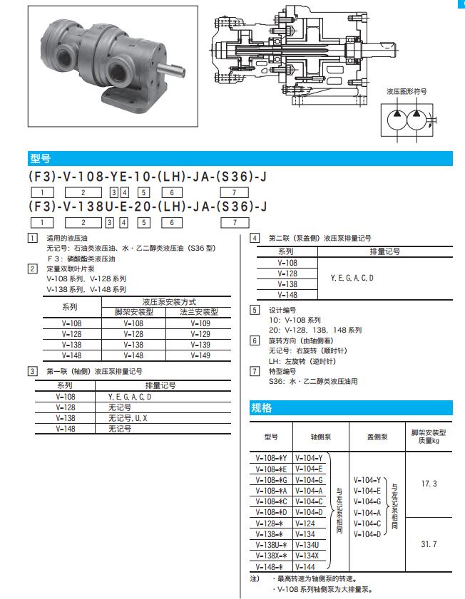 V-108-YY-10,V-108-YE-10,V-108-YG-10,V-108-YA-10,V-108-YC-10,V-104,124,134,144系列定量雙聯(lián)葉片泵