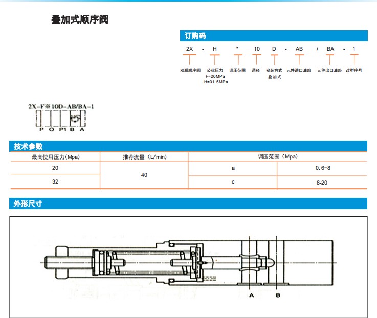 2X-Fa10D-AB/BA-1,2X-Fc10D-AB/BA-1,疊加式順序閥