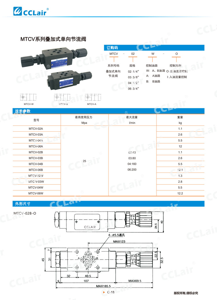 疊加式單向節(jié)流閥MTC-02A,MTC-03A,MTC-04A,MTC-06A,MTC-02B,MTC-03B,MTC-04B,MTC-06B,MTC-02W,MTC-03W,MTC-04W,MTC-06W,