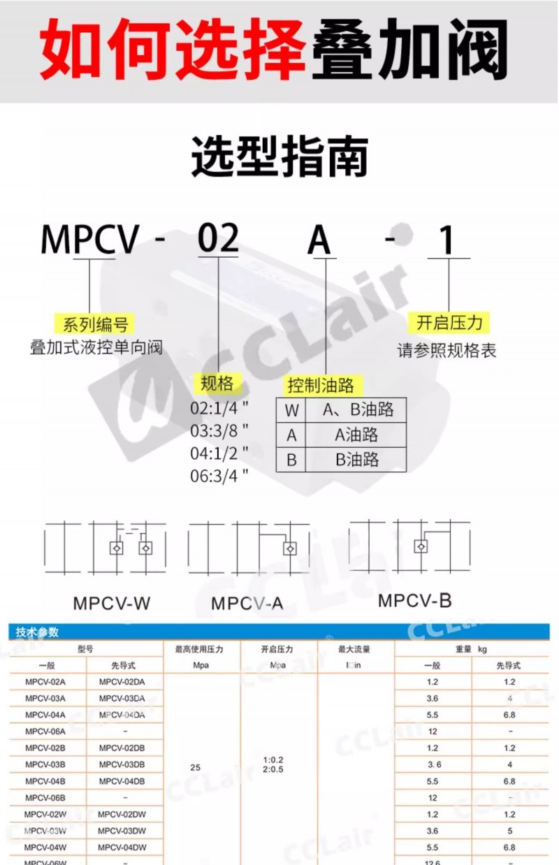MPCV-02W-,MPCV-03W-,MPCV-02A-,MPCV-03A-,油研型疊加式液控單向閥。