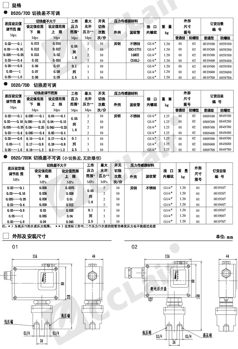 型號: 防爆 D530/7DD切換差不可調(diào)