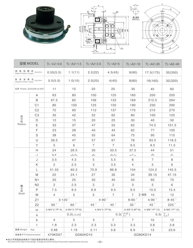 TL-A2-0.6,TL-A2-1.5,TL-A2-2.5,TL-A2-5,TL-A2-10,TL-A2-20,TL-A2-40,軸承安裝法蘭式電磁離合器