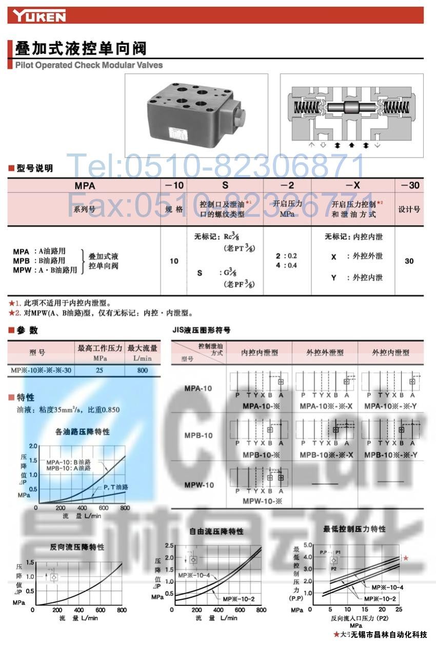 MPA-10S-2-X-30,MPA-10S-2-Y-30,MPA-10S-4-X-30,疊加式液控單向閥,榆次油研YUKEN疊加式液控單向閥