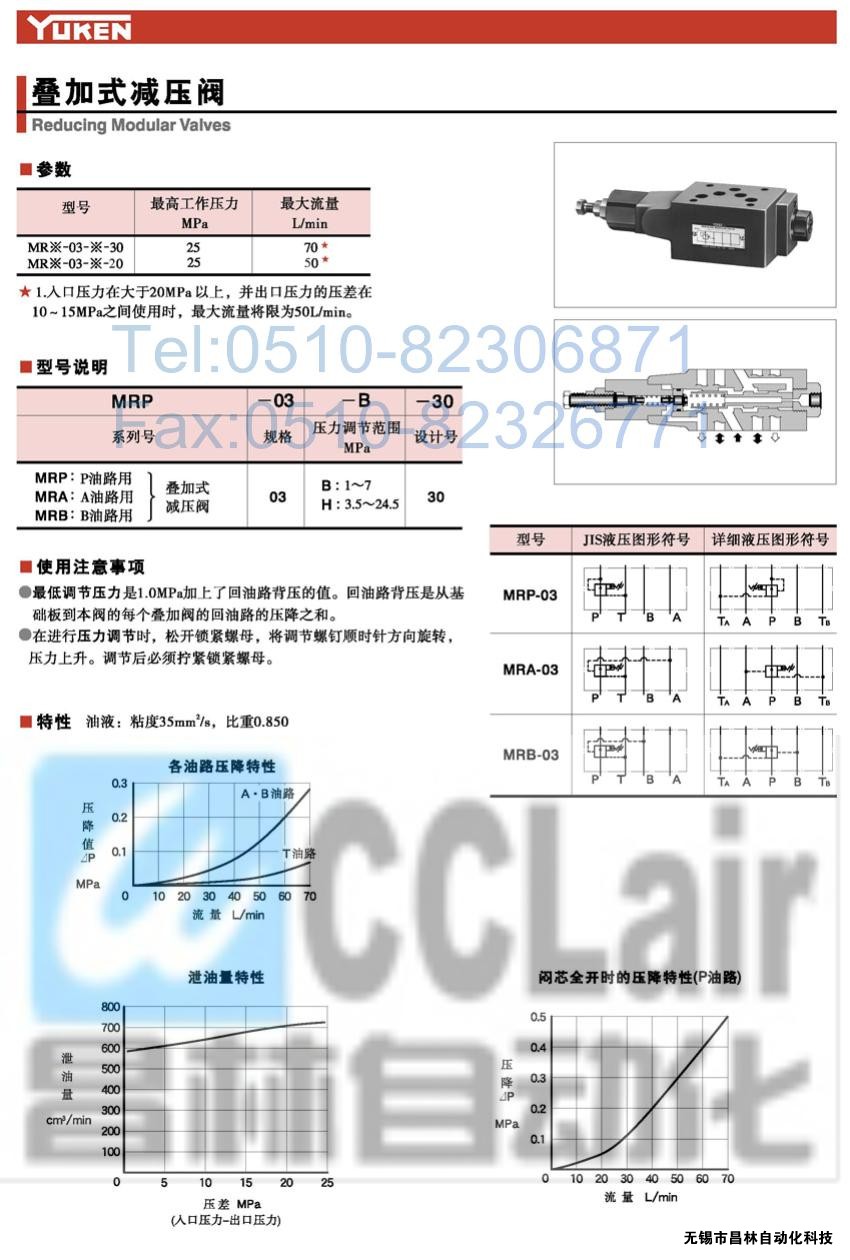 MRA-03-H-30,MRB-03-B-30,MRB-03-H-30,疊加式減壓閥,榆次油研疊加式減壓閥,YUKEN疊加式減壓閥