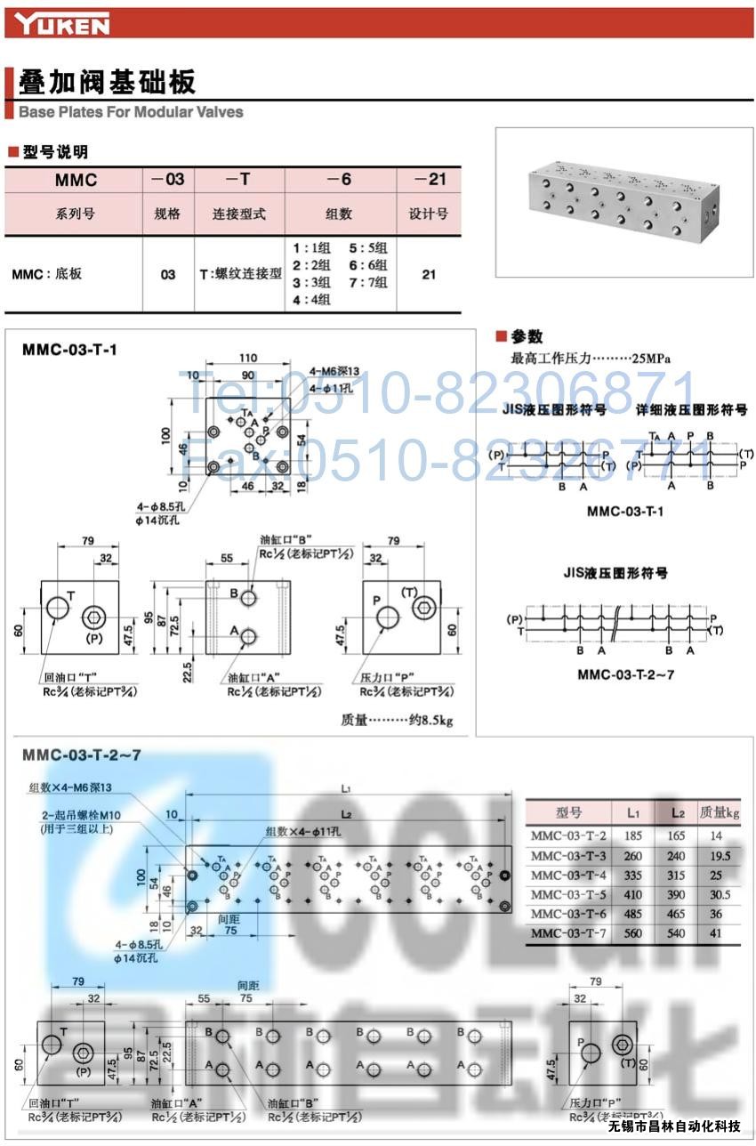 MMC-03-T-3-21,MMC-03-T-4-21,MMC-03-T-5-21,疊加閥基本板,榆次油研,疊加閥基本板,YUKEN,疊加閥基本板