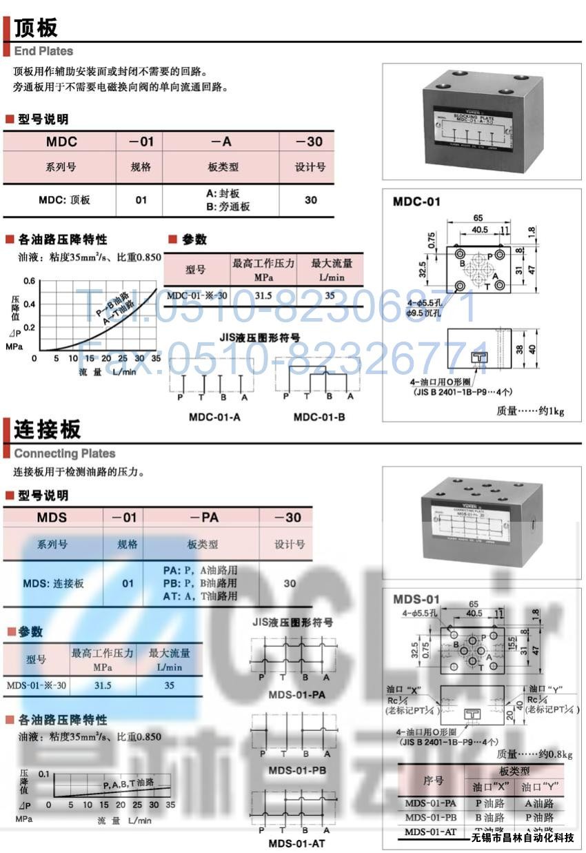 MDS-01-PA-30,MDS-01-PB-30,MDS-01-AT-30,連接板,榆次油研連接板,YUKEN連接板