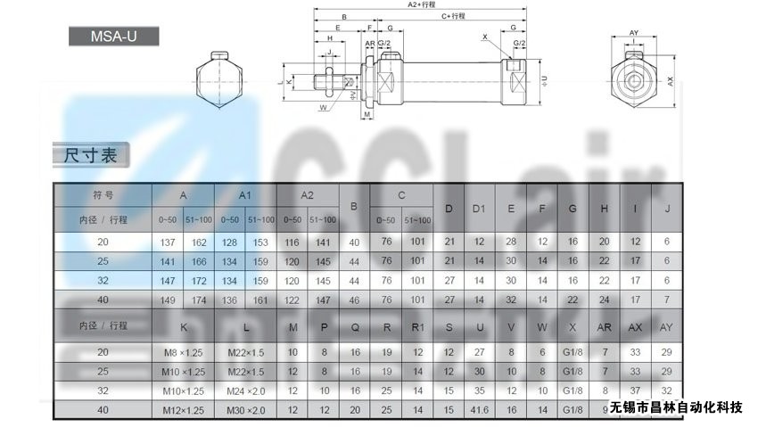 MA-CA40-75,MA-CM40-100,MA-U40-100,不銹鋼迷你氣缸
