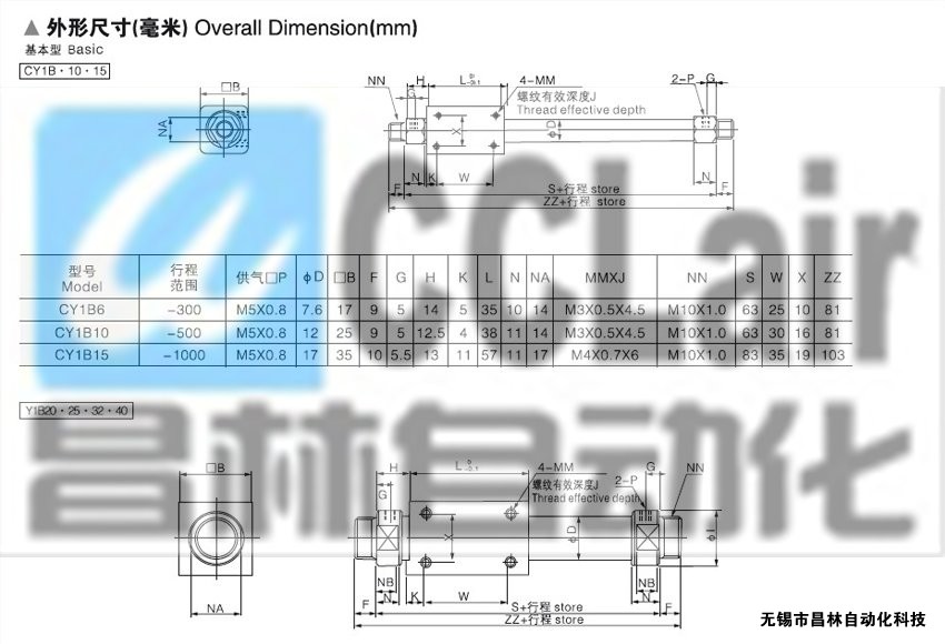 CY1B20-350,CY1B20-400,CY1B20-450,CY1B20-500,CY1B20-600,CY1B20-700,磁耦式無桿氣缸