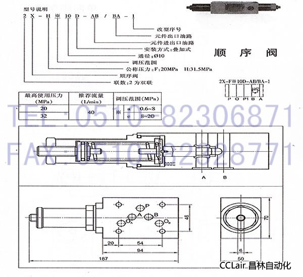 X-Fc10D-P-1 ,X1-Fa6/10D-P1/P-1, 2X-Fa10D-AB/BA-1 ,單向順序閥,