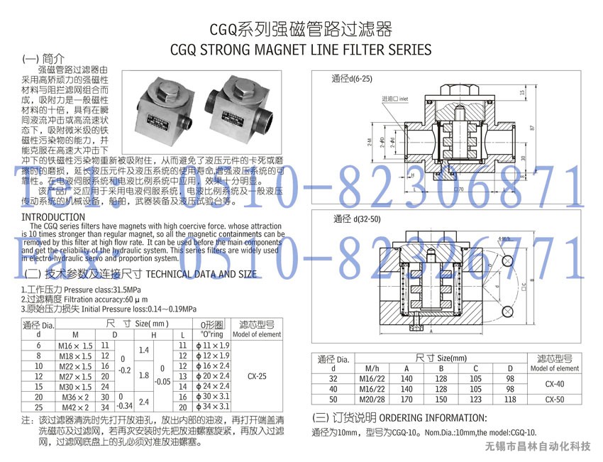 CGQ-6,CGQ-8,CGQ-10,CGQ-12,CGQ-15,CGQ-20,CGQ-25,CGQ-32,CGQ-40,CGQ-50,強(qiáng)磁管路過濾器