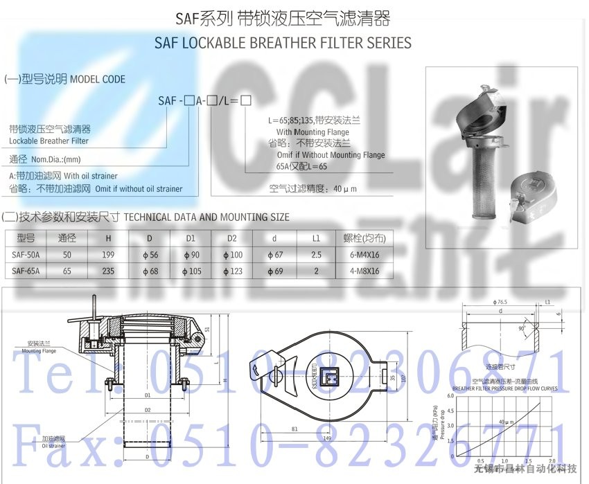 SAF-50A,帶鎖液壓空氣濾清器