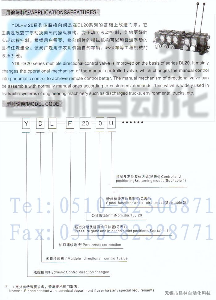 YDL-E20-PQ,YDL-E20-PU,YDL-E20-MT,YDL-E20-MW,YDL-E15-MQ,YDL-E20-MU,多路換向閥