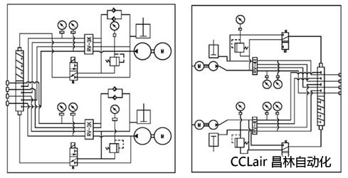 | 1 - 壓力表;2 - 壓力表;3 - 貯油器;4 - 電動機;5 - 電動潤滑脂泵 6 - 液壓換向閥;7 - 電磁換向閥;8 - 液壓換向閥;9 - 限位開關(guān) |